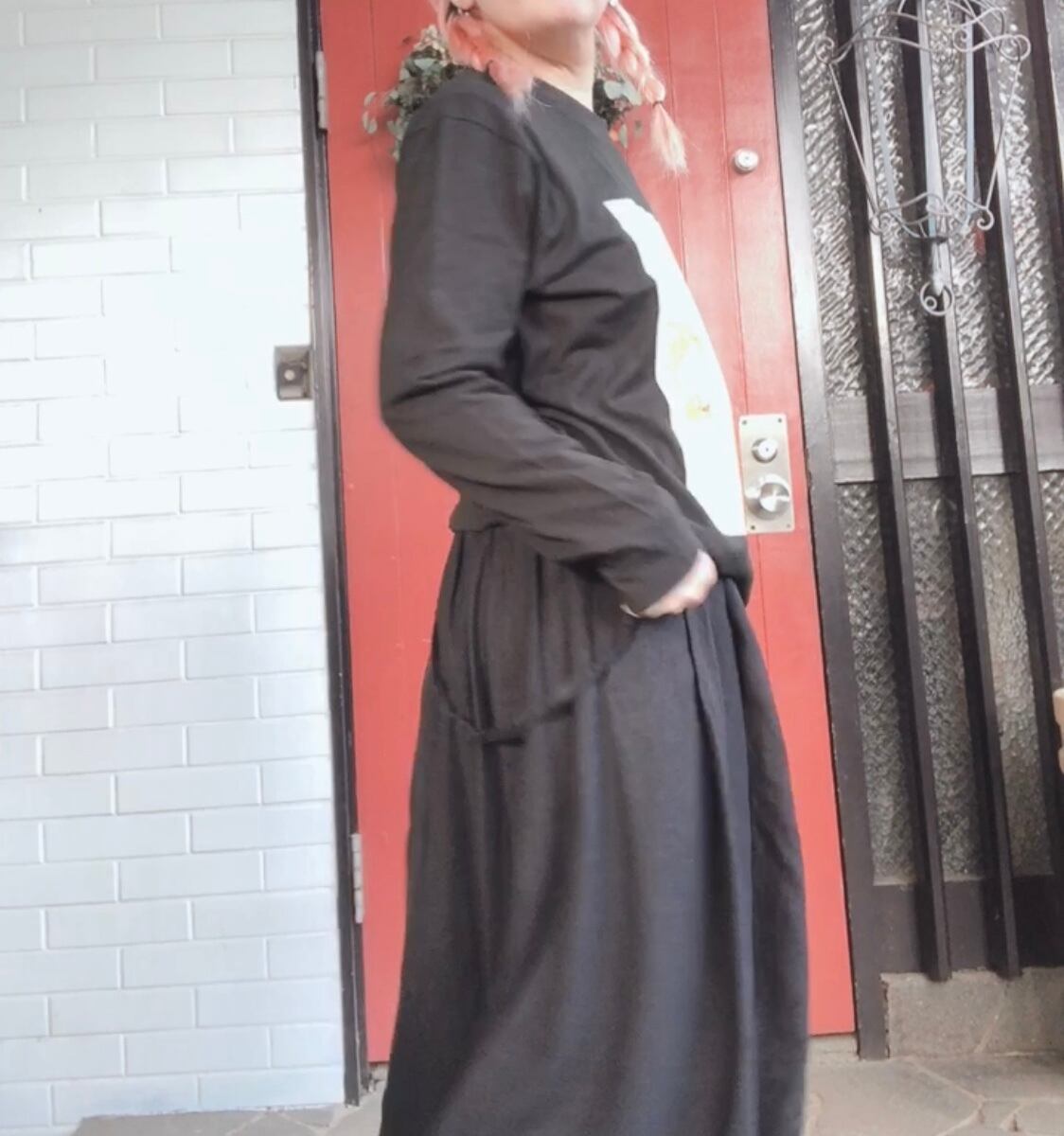 綿100で肌触りもよく丈夫で厚みのある生地ですので冬の重ね着にも春先に薄手のアウターのコーデにもいかがでしょうか?